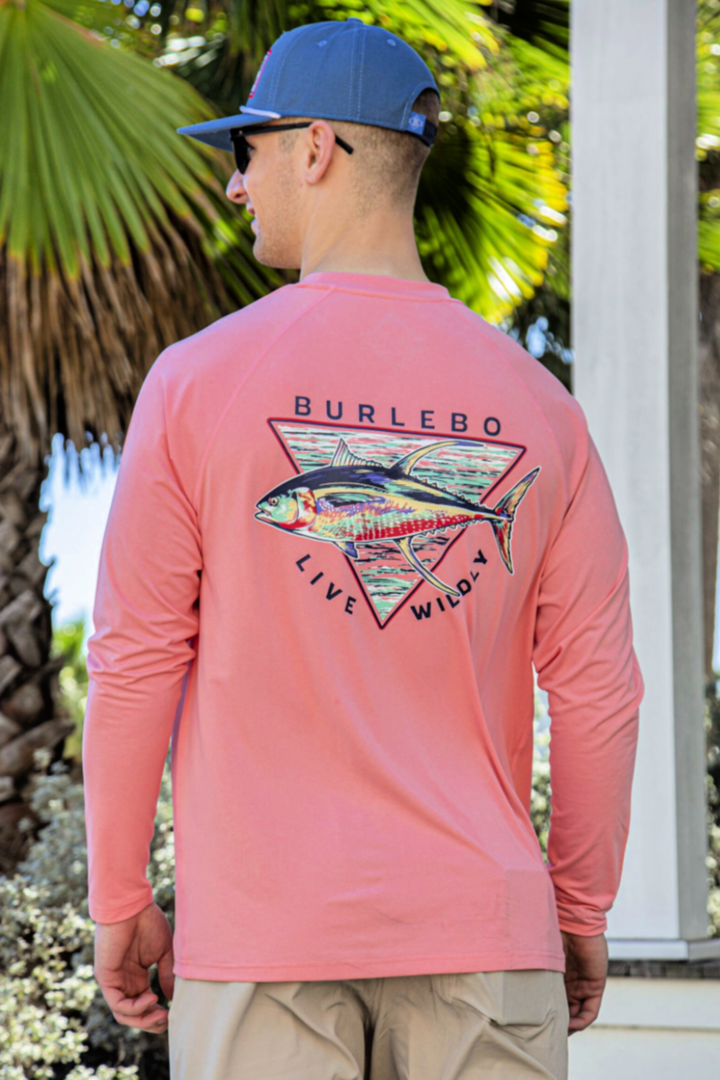 You’ve been preparing for a fishing trip for weeks, and the day has finally come to go out. You’re preparing for to catch a large haul this trip and are looking forward to having fish dinners for several weeks. You go with your bros on your boat and spend the day just as you imagined: lots of fish and laughs. You have a genuinely good time and can’t wait to go out again soon. You want to commemorate your trip, and you can with this this long sleeve performance t-shirt from Burlebo that lets you show your love for fishing and living wildly.