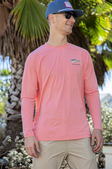 Made of 91% polyester and 9% spandex to ensure you get the comfiest, best fit you’ve ever experienced in a performance t-shirt, this fishing performance shirt will surely be a wardrobe staple for years to come. The color allows you to prove the old adage that tough guys wear pink (well, in this case, Heather Coral) while the detailed graphic featuring a colorful fish allows you to show off your love for Gulf fishing. The long sleeves performance tshirt ensure you’ll be comfy whether you’re out boating or cuddling up with your date on a cool winter night. The best part? The shirt features 50 UPF (sun protection is always in) and is antimicrobial and moisture wicking for those extra active fishing days or when you need something with long sleeves in the summer.